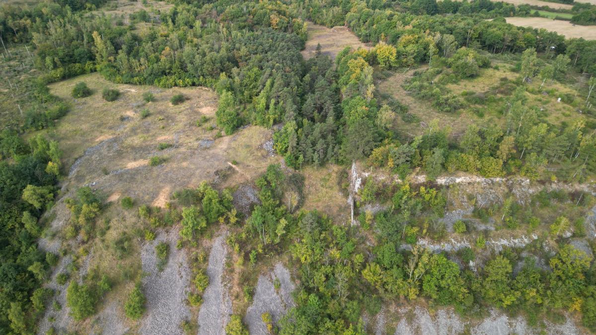 Entreprise Rolot et Fils au Mont d'Haurs - En premier plan  : arbres portant un triangle bleu renversé qui sont conservés pour la biodiversité ©V. Schmitt
